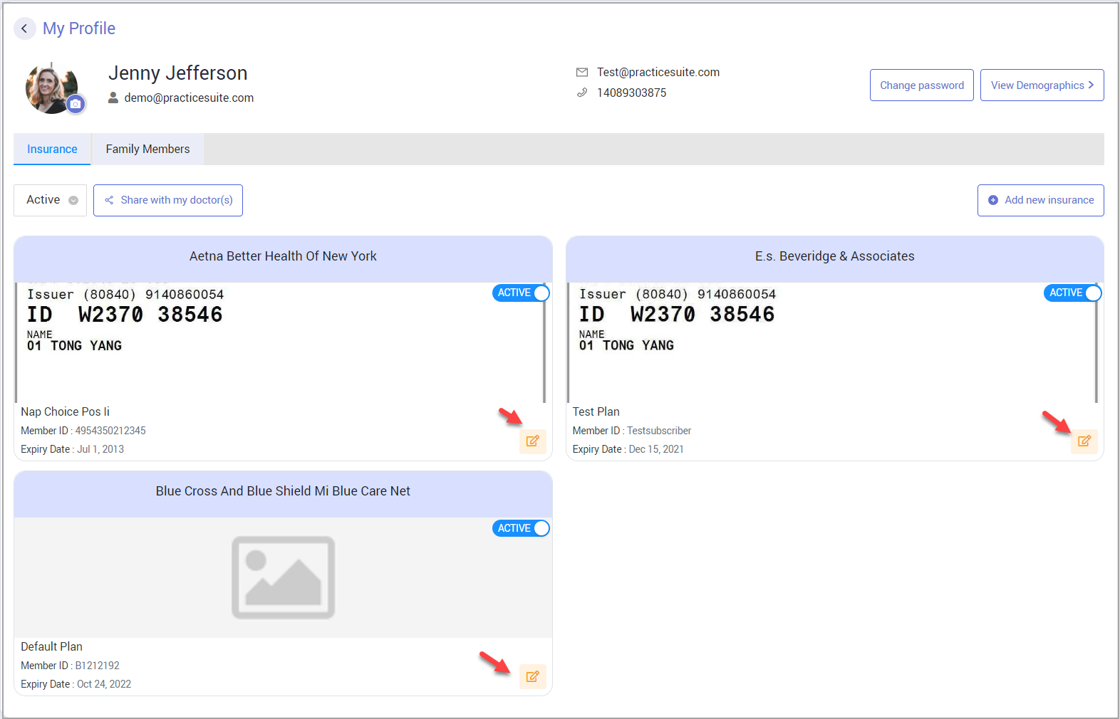 Go to ‘My Profile’. Under the Insurance tab, click on the edit icon for the insurance you want to update.