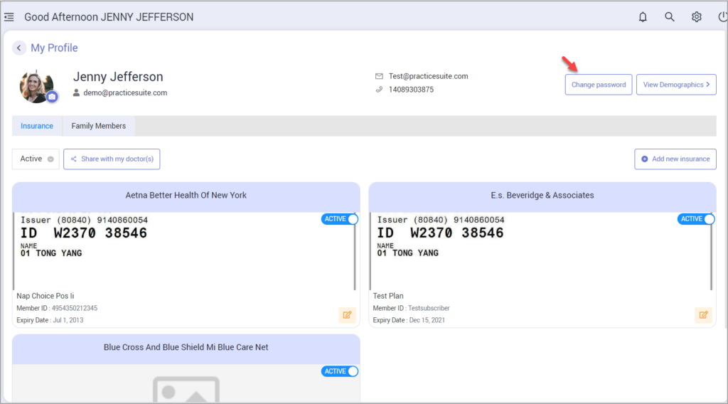 Once you have signed in to HelloHealth, you can reset your password from any page.
