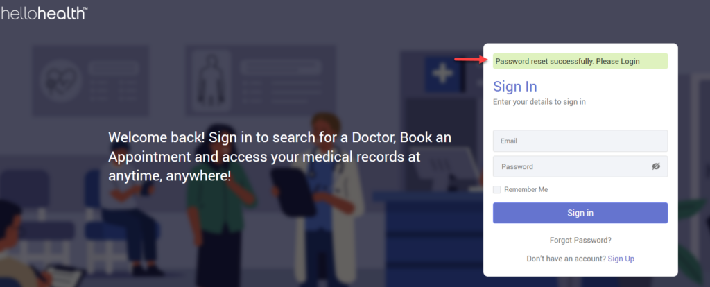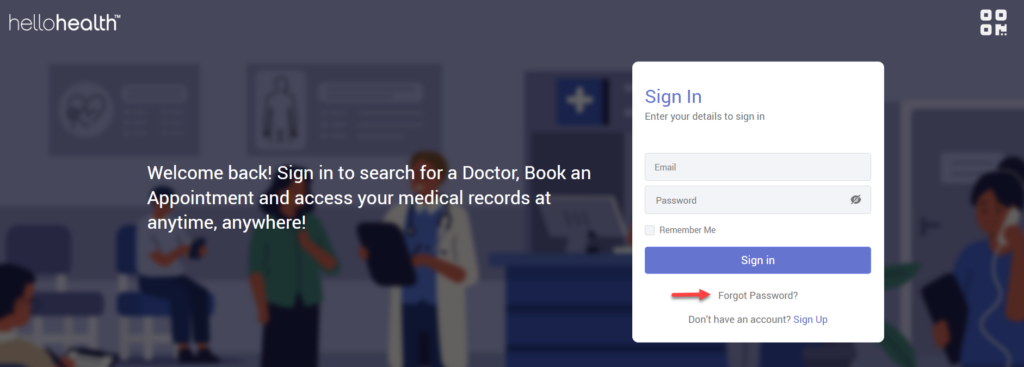 1. The HelloHealth’s ‘Sign In’ page has a ‘Forgot Password’ option. Click on it.