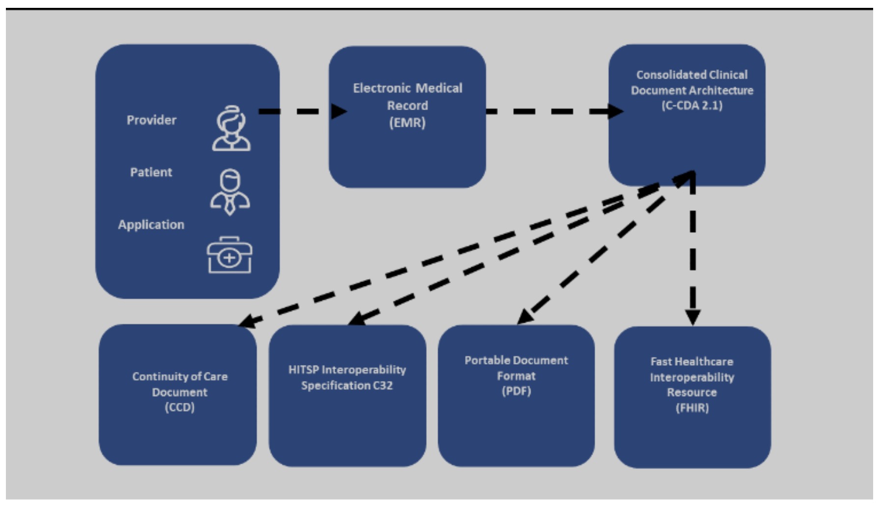 C-CDA stands for Consolidated Clinical Document Architecture. It’s the most widely used format for health information exchange in the US today. Each patient encounter in the healthcare system can be represented by a single document in the Clinical Document Architecture (CDA) style.