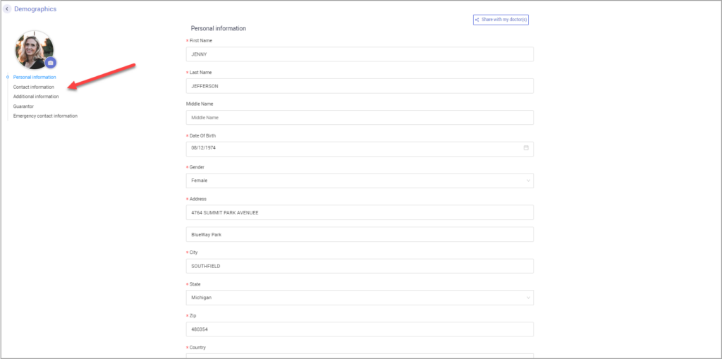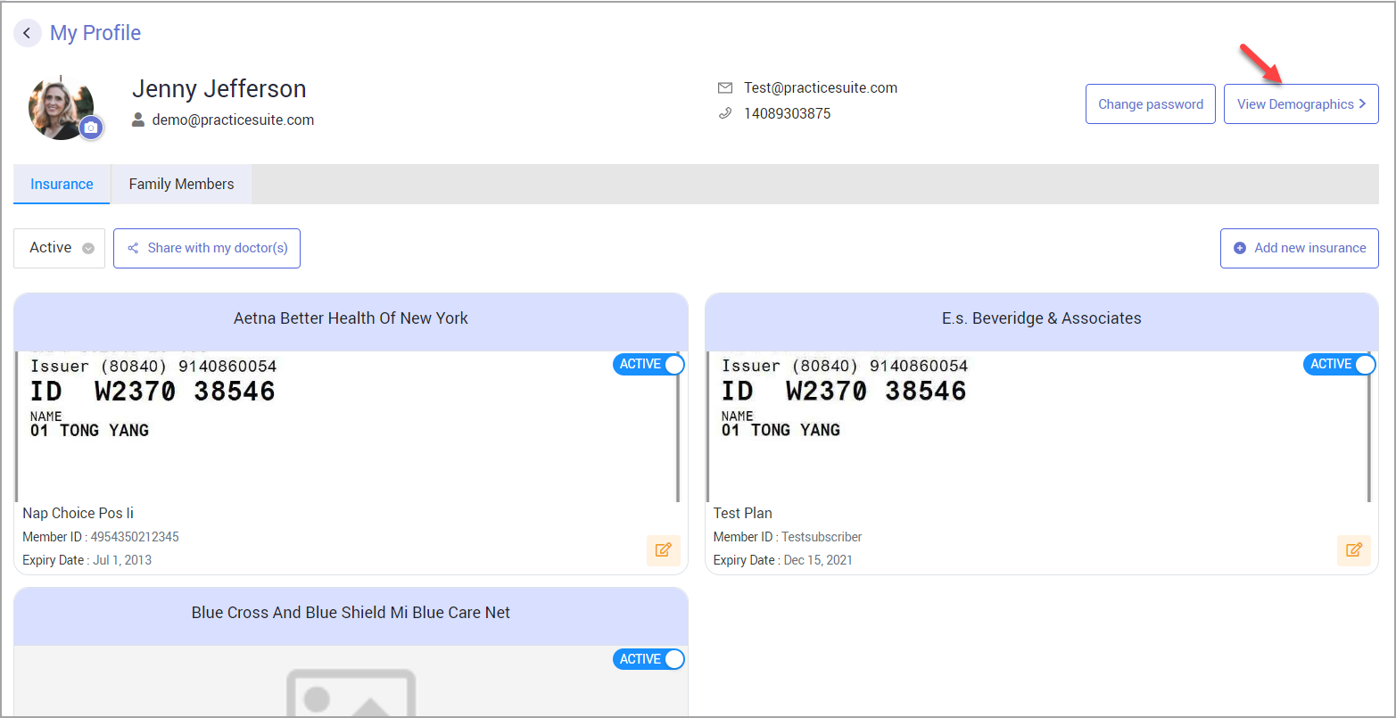 Click on the ‘View Demographics’ button on the top right. This takes you to the demographics page where you can add/edit your: