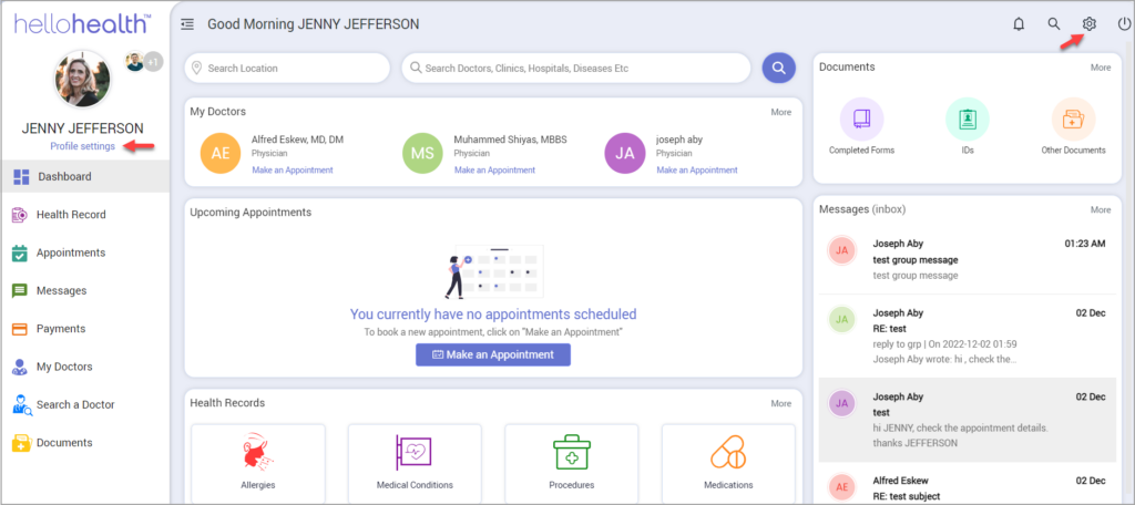 A. Click on your profile picture or ‘Profile Settings’ under your picture on the top left of the screen.
