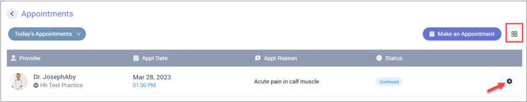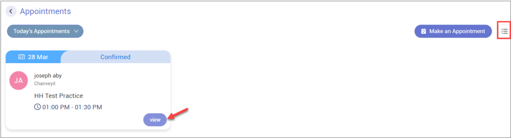 To view the appointment details, click on ‘View’ if it is a tile view or click on the icon