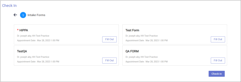 On the appointment details page, you can find the check-in option enabled on the appointment date.